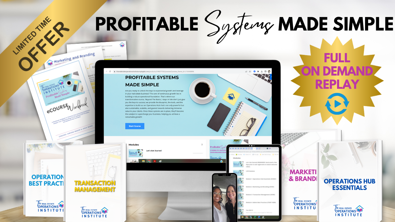 Here at The Real Estate Operations Institute (TREOI), we're dedicated to transforming realtors and admins into profitable industry leaders. Our focus is simple: to empower and equip you with the knowledge, skills, and proven systems needed to thrive in your real estate career!